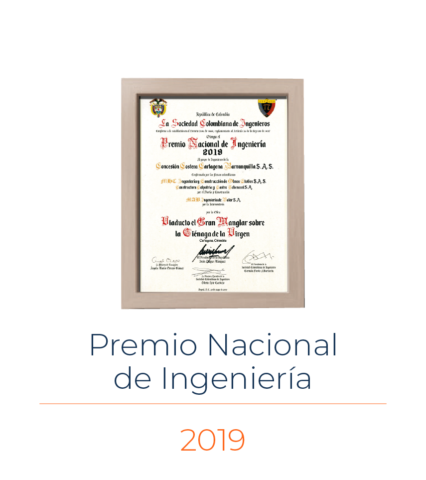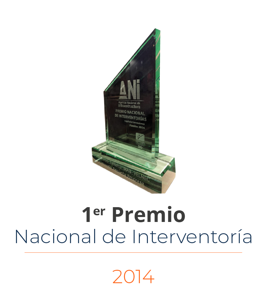 Hemos sido galardonados por reconocidos gremios e instituciones. Somos la primera y única Supervisión con el Premio Nacional de Ingeniería que otorga la Sociedad Colombiana de Ingenieros.